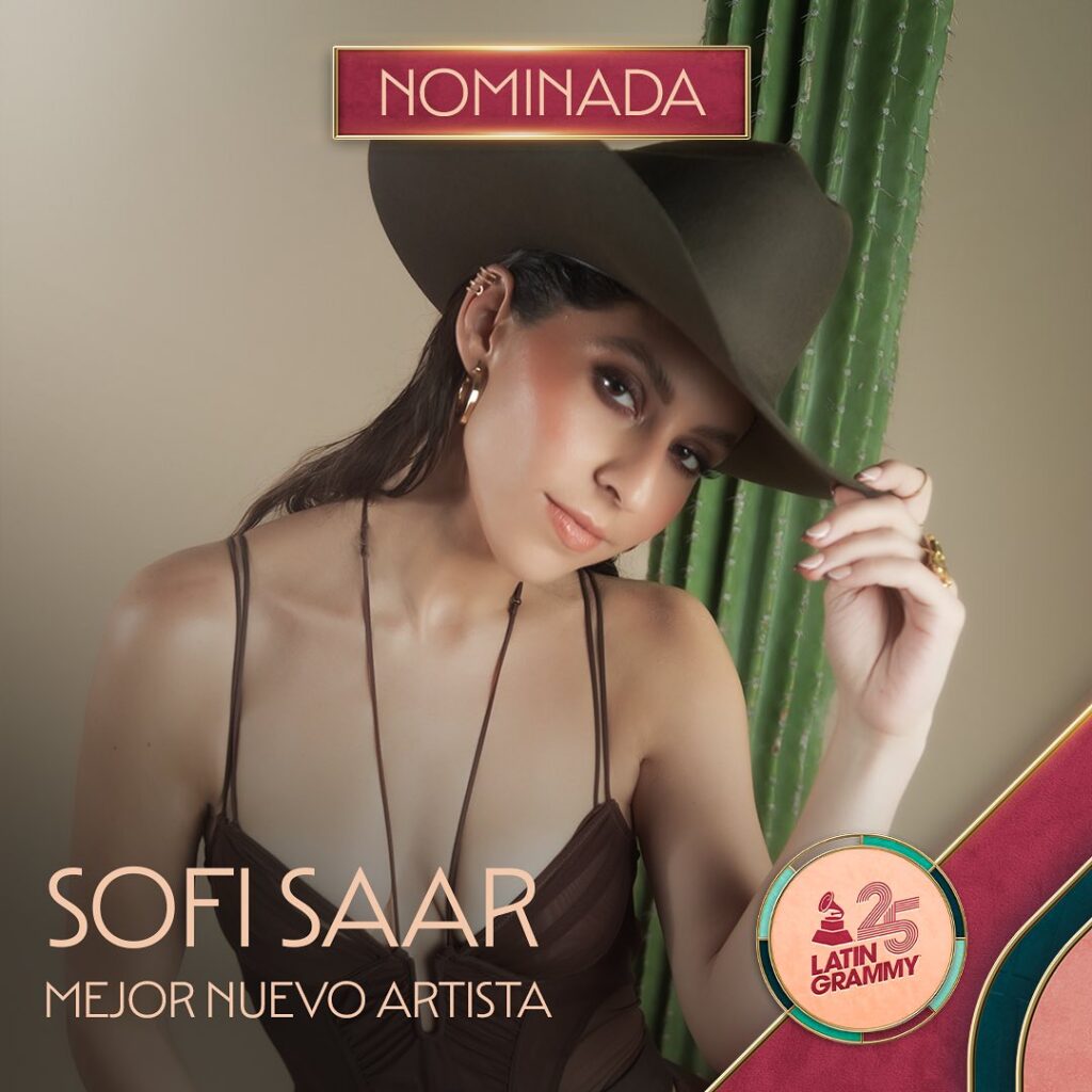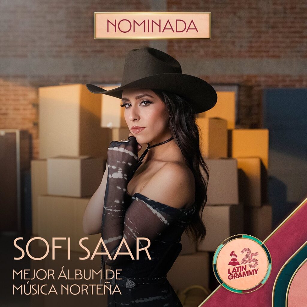 La artista regiomontana de música mexicana, Sofi Saar, recibió dos nominaciones en la 25ª edición de los Latin GRAMMY® en las categorías de Mejor Álbum de Música Norteña por su disco debut ‘TERCA‘ y Mejor Nuevo Artista.